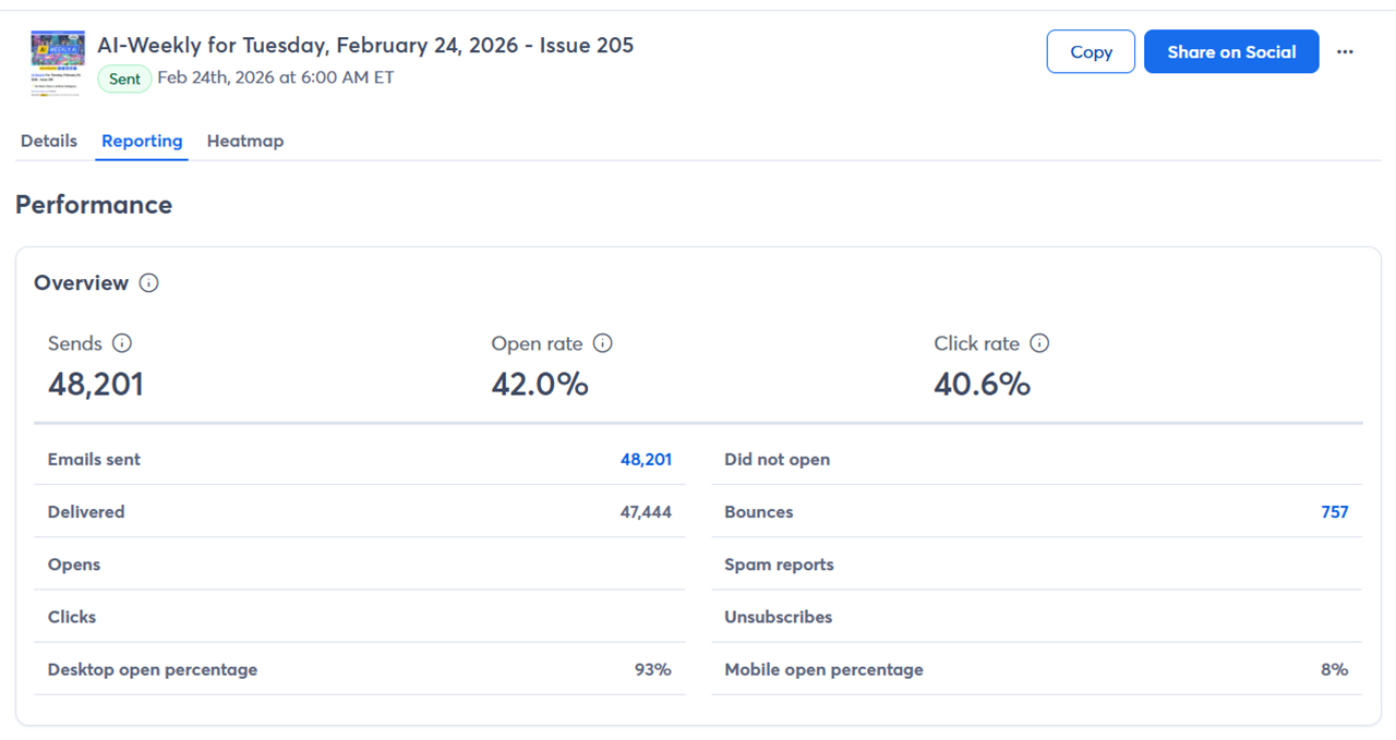 2.) Subscriber Count 🔢️ Over 45,000 readers currently receive the AI-Weekly newsletter each week.