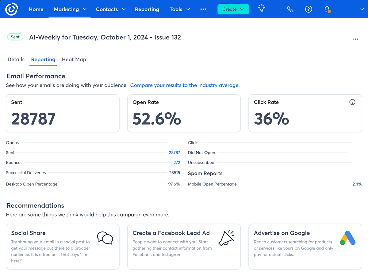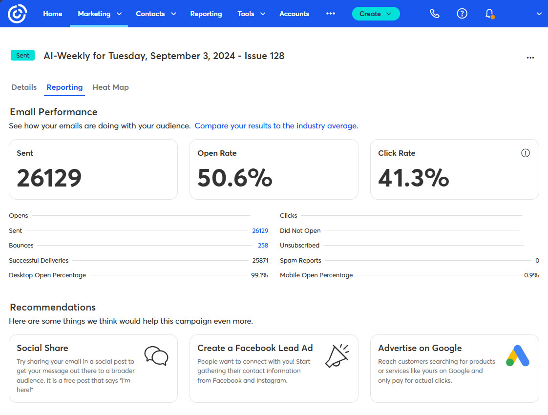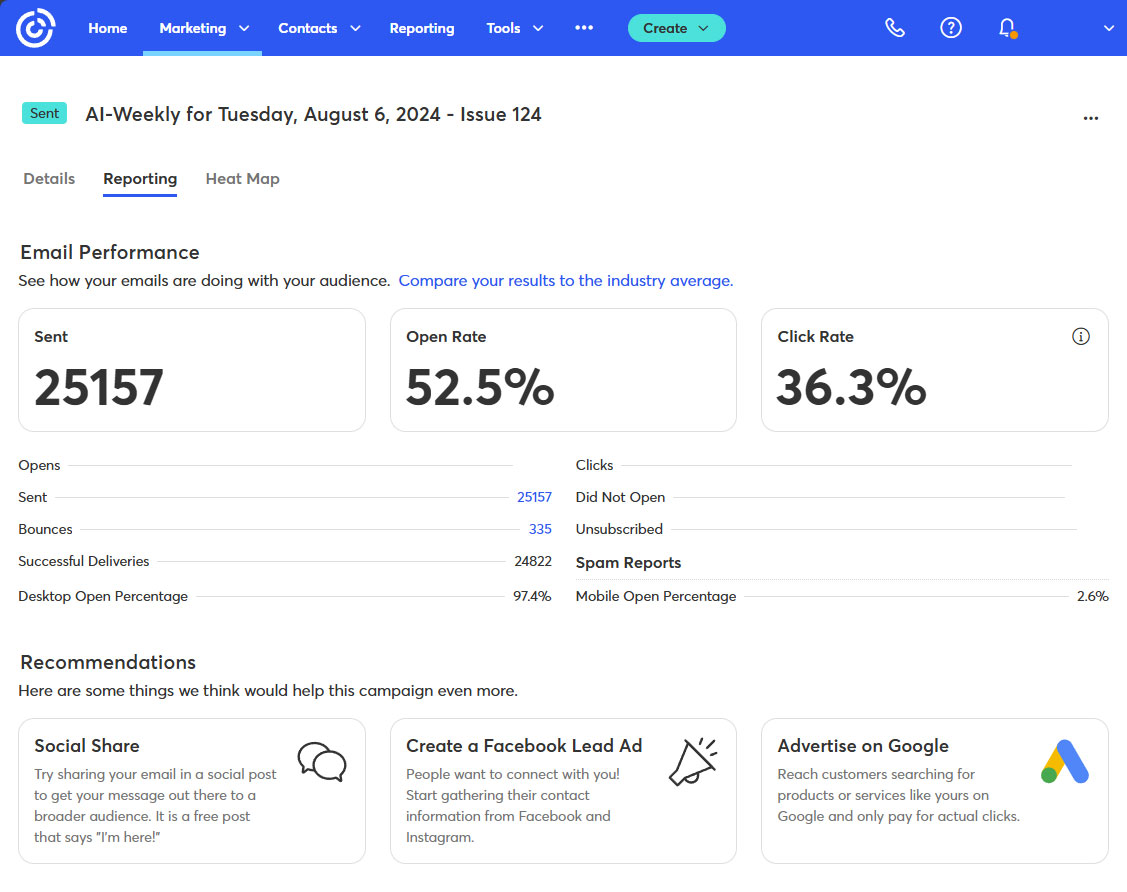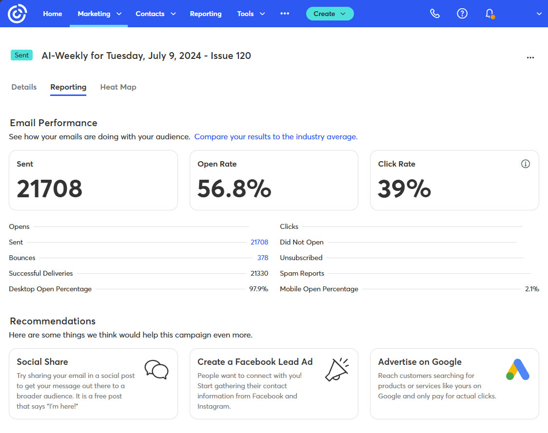 3.) Key Newsletter Statistics 📊️ Current Subscribers: 45,000. Open Rate: 53%. Click Rate: 39%. Bounce Rate: 1.2%. Ad CTRs: 2-12%. (Averages. Last 12 months.) For proof of our stated subscriber counts please see the Subscriber Count Screen Shots section.